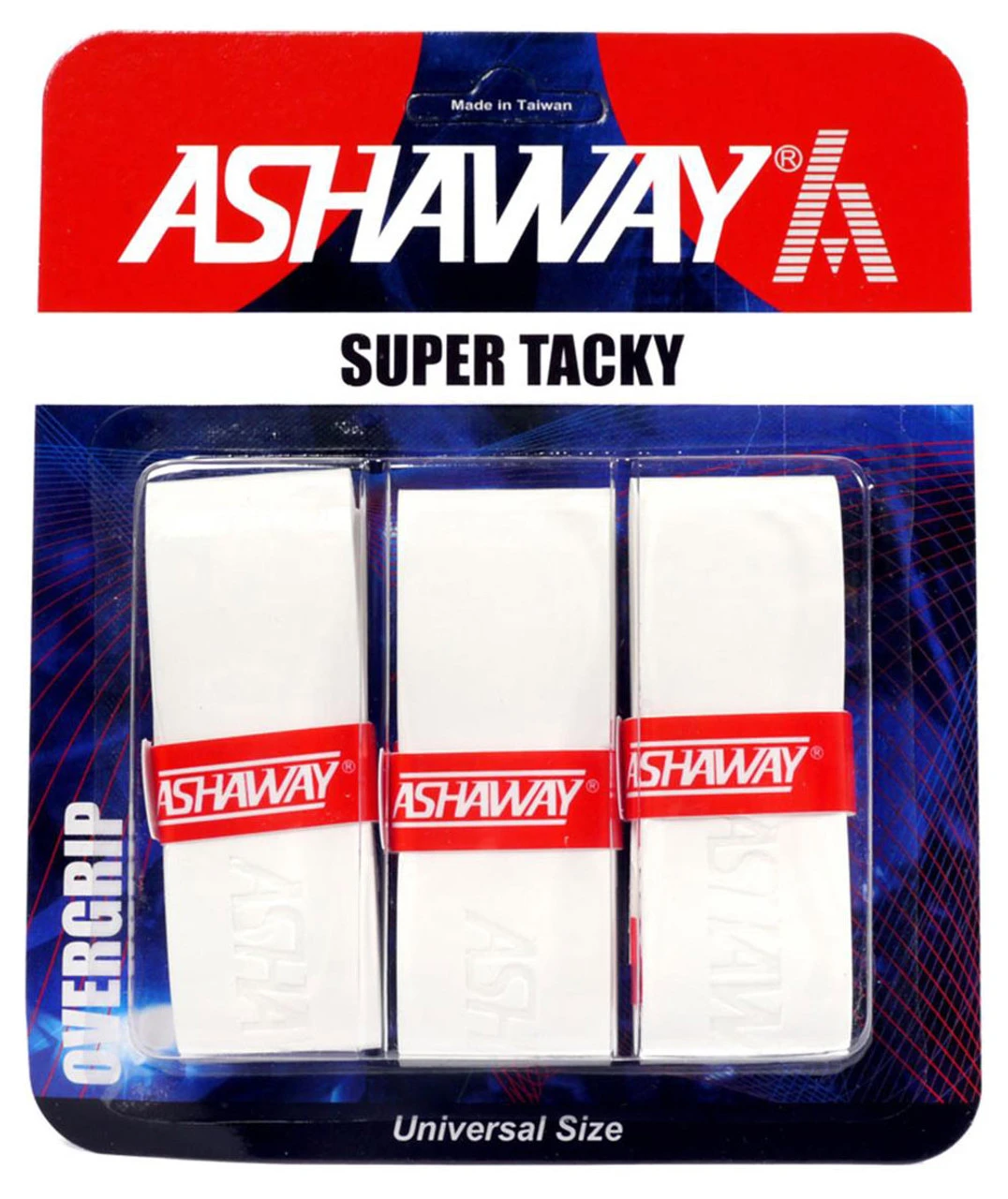 Ashaway Super Tacky Overgrip with a PU surface offering a non-slip performance and extra tackiness, together with better absorbency and comfortable grip material.