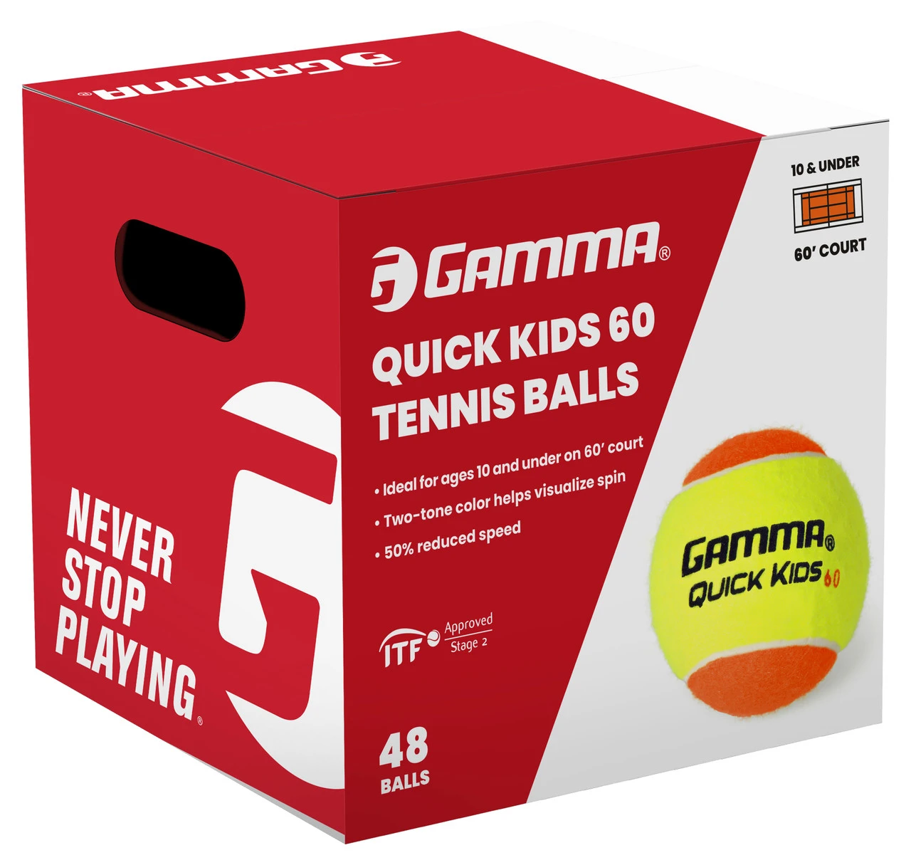 GAMMA Quick Kids 60 Stage 2 Orange Junior Tennis Balls are suitable for younger players and beginners. These are lightweight tennis balls which are 50% slower than a standard tennis ball, ensuring an easy transition. Suitable for 10 and under.