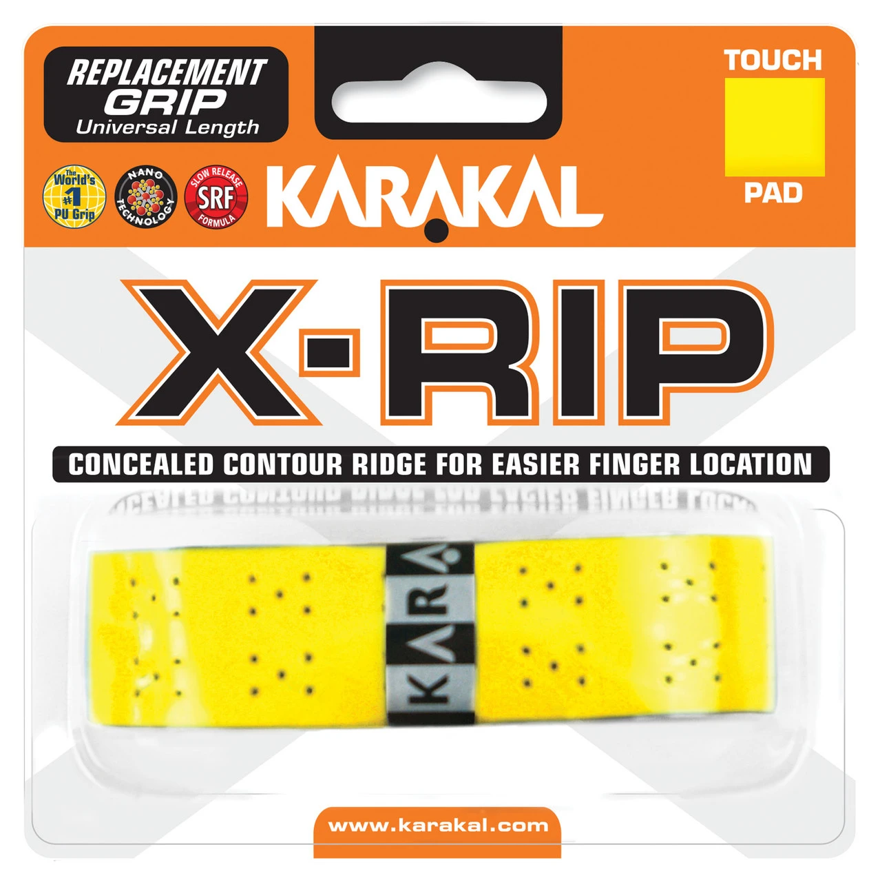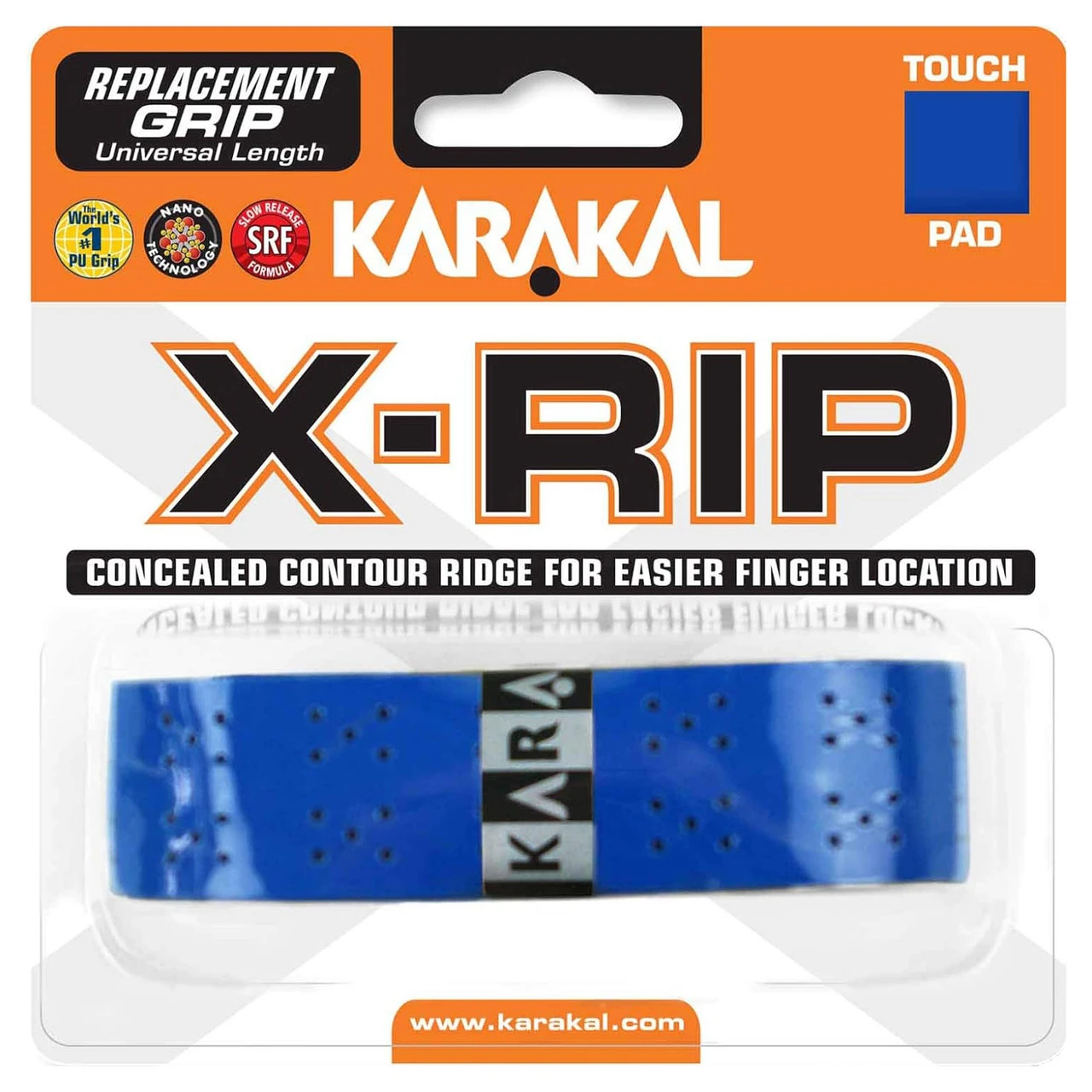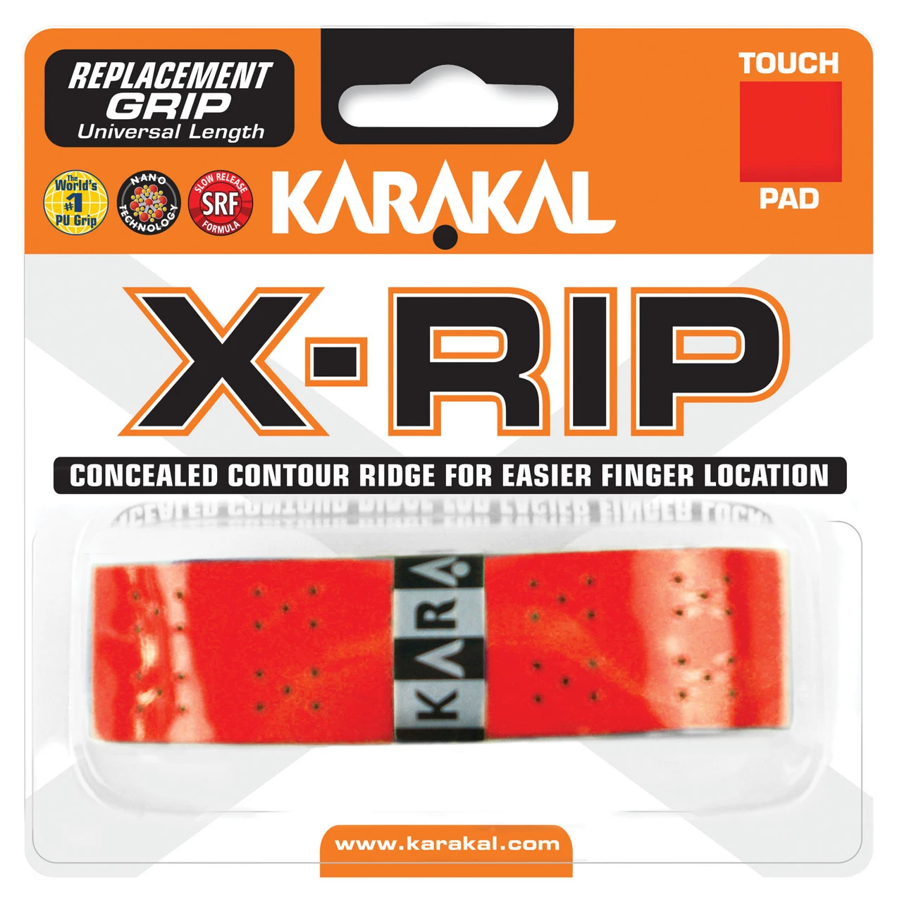 Karakal X-Rip Replacement Grip has a concealed contour ridge for easier finger location, together with a non-slip PU breathable surface.